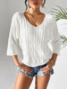 Burgundy Floral Stripe Two Tone Bell Sleeve Knit Top