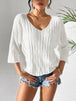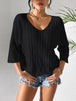 BiBi Cord Rib Combo V Neck Jersey Knit Top